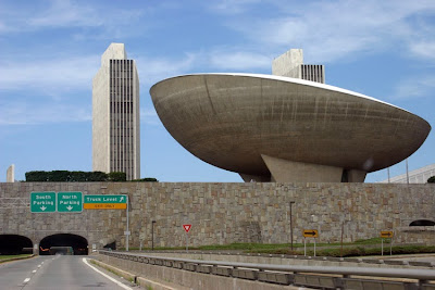 I think this is part of the reason why I like it so much, specifically because it's such an evil looking style. The Brutalist style meshes so perfectly with my angry, futurist outlook and my love of all things Dalek. Some of these buildings even look like they borrow some of the visual cues from their iconic metal skirts.